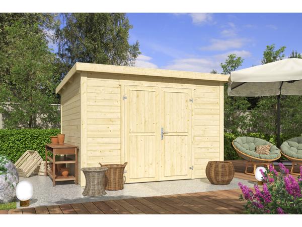Het Tuinhuis Lotta 300x250 heeft een fundamentmaat van 300cm(b) x 250cm(d). De massieve 28mm dikke vurenhouten wanddelen zijn uitgevoerd met mes en groef. De stapelbouw methode in combinatie met hoekpalen en schroefsysteem zorgt voor een zeer sterke constructie. Dit moderne en strak vorm gegeven tuinhuis met haar dubbele dichte deur is bijzonder geschikt als berging voor uw tuinspullen. Het basispakket wordt geleverd inclusief een duidelijk montagehandleiding, onderdelenlijst en uiteraard alle benodigde bevestigingsmaterialen, zoals het deurbeslag. Dit Tuinhuis wordt zonder dakbedekking geleverd, hiervoor is optioneel een EPDM dakbedekking pakket bestelbaar. Het stapelbare blokhut systeem is door de handige doe-het-zelver prima zelf te monteren en dit tuinhuis wordt als bouwpakket bij u thuis geleverd.