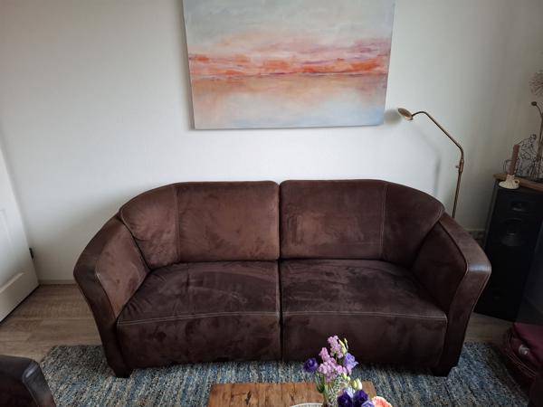 Een mooie rechte bank met gebogen hoeken. Heel comfortabel.