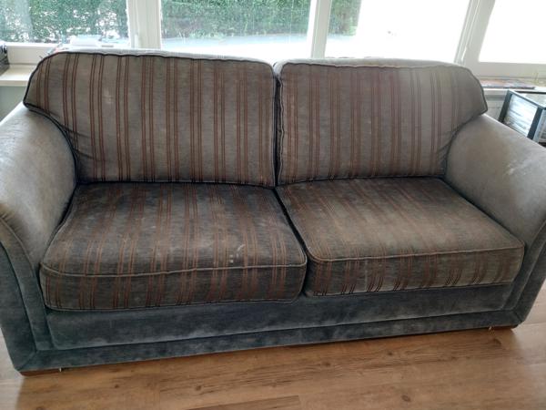 Twee bankstellen (2&3 Zits) Toe aan een nieuwe stof. Maar dan hebt u prachtige banken die nog heel goed zitten! Niet doorgezakt zodat je bijvoorbeeld de vering voelt zitten. De dikte van de kussens is 15 cm.