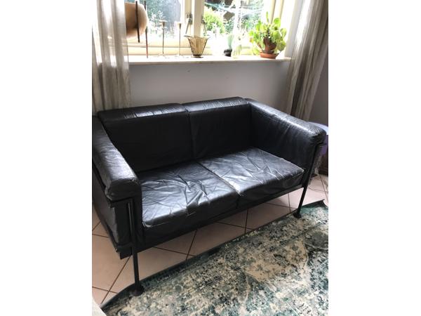 2 zwartleren design banken merk Harvink. Leer is gescheurd op de naden, frames en kussens intact. Breedte : 138 cm, diepte 53 cm Kan op vrijdag 23 of zaterdag 24 oktober worden opgehaald.