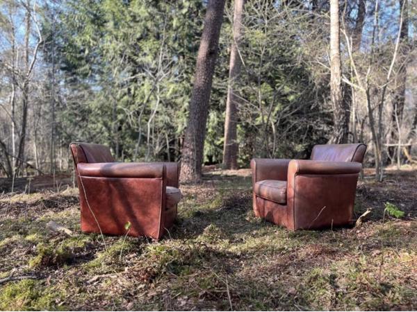 Staan ze nou in een bos? Ja, we hebben deze fauteuils gebruikt om een podcast in het bos op te nemen. Nu zijn ze niet meer nodig en mogen ze worden opgehaald. Ze zijn al een dagje ouder maar zitten nog prima vond ik.