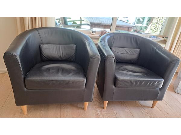 2 zwarte (kunst) leren fauteuils/zitstoelen 2 zwarte (kunst) leren fauteuils/zitstoelen