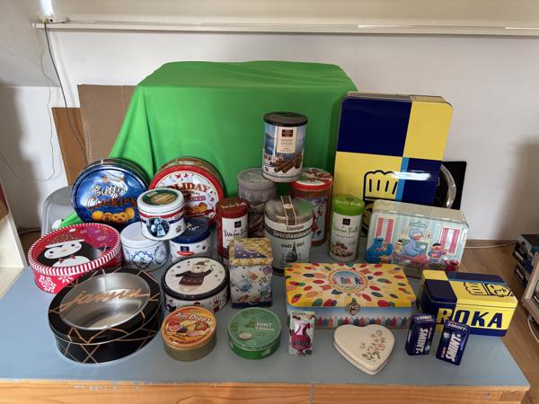 Wij verkopen een verzameling van oude en nieuwe bussen en blikken.