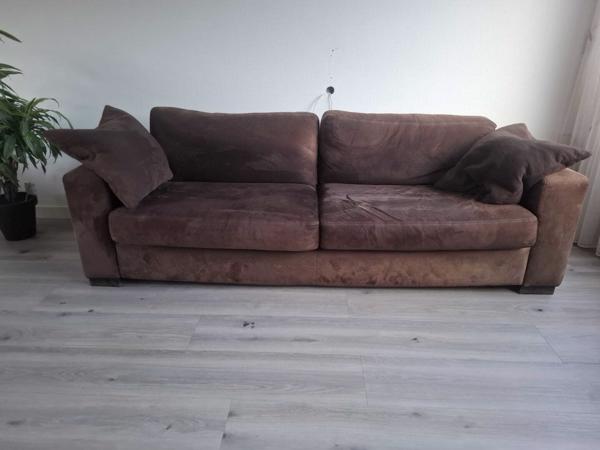 Comfortabele bruine 2,5 persoons zitbank (240cmx90cmx60cm). De bank is in gebruikte staat, materiaal is stof. De bank kan gratis worden opgehaald. De bank kan tegen betaling gebracht worden.