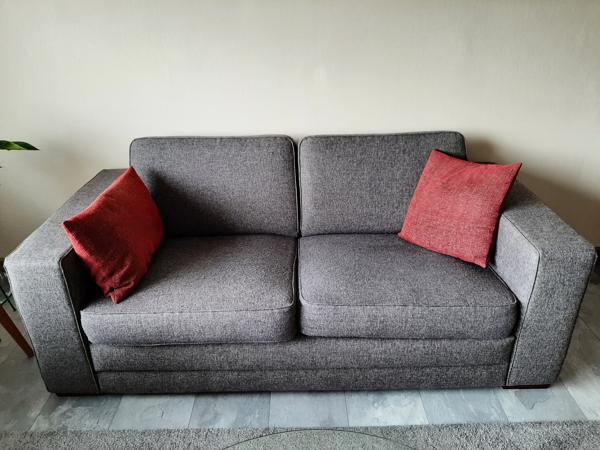 Gratis op te halen: 2,5 zitsbank met bijpassende fauteuil in donkergrijze stof. Gebruikt, maar in zeer goede staat. Ik doe deze bank weg ivm aankoop hoekbank. Bijpassend kleed beschikbaar.