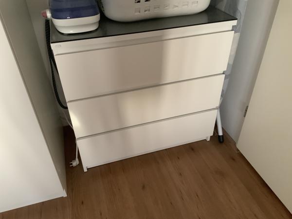 Nette ladekast met 3 lades en glasplaat bovenop, ziet er heel netjes uit, omdat we kleiner gaan wonen kunnen we deze niet meer kwijt.
