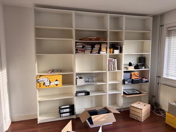 4 Billy boekenkasten: 3x 80x29x201cm 1x 40x29x201cm 4x verhoger van 35cm. De kasten zijn in prima staat, wel is er een klein stukje van de achterkant uitgezaagd vanwege de plint, zie foto. Bij 1 kast is er een gaatje gemaakt in de achterwand voor een stroomkabel, zie foto.