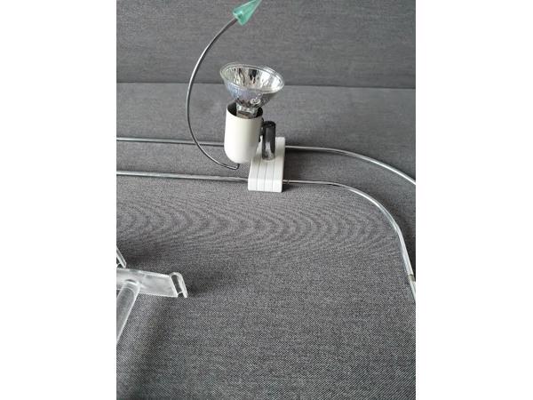 In goede staat 5 spotjes op rails, dimbaar met transformator en bevestigingspunten. 1m70 bij 0,70 m