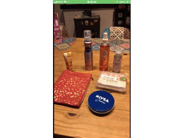 Alles is nieuw en nooit gebruikt! 1 toilettasje, 1 reispakketje, 1 nivea crème, 1 hand crème , 1 niveau haar mouse, 1 hear & scalp kruitvat merk, mini reis douch gel handig voor op reis. Fijn voor mensen die het goed kunnen gebruiken voor een relatief klein bedrag. Je kunt de producten gebruiken voor haar, body en gezicht.