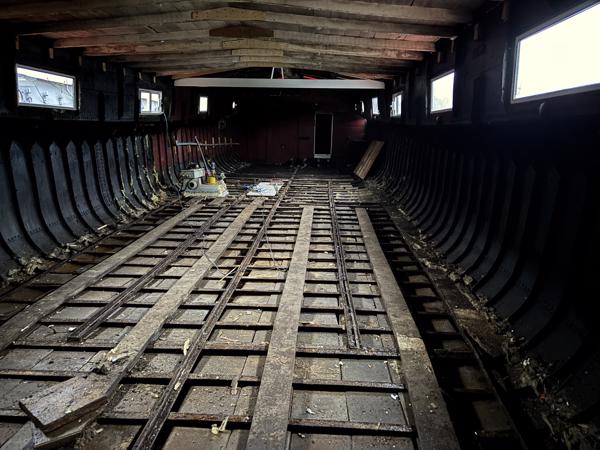 Stoeptegels netjes gestapeld zo op te halen. Waren ballast in woonboot