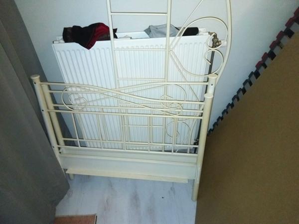 90x200 buizenframe bed (meisjesbed) 10jr oud - lattenbodem en matras zijn 21 maanden oud.