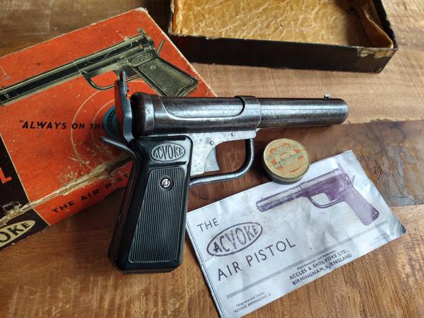 dit was de grote concurrent van Webley... Acvoke claimde krachtiger en beter te zijn dan de Webley.. feit is dat het een krachtig luchtpistool is wat prettig schiet... Concentrisch systeem, de veer zit rond de loop... zeer degelijke constructie...