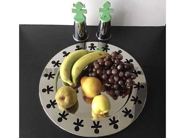 Schaal & Peper/zoutmolen . Uit de beroemde King Kong serie . Ontwerp van Stefano Giovannoni & Guido Venturini deze bedachten de twee poppetjes die in diverse producten verwerkt zijn bij Alessi . Vanaf eind jaren ‘80 is het in productie genomen in een brede selectie. Maar deze 3 keuken/tafel accessoires biedt ik te koop aan. Vraagprijs €80,00 Verzendkosten voor de koper