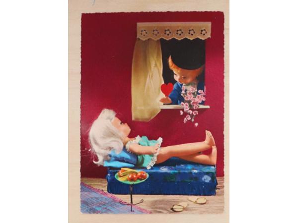 Ansichtkaart met poppen van Kruger uit West-Duitsland
