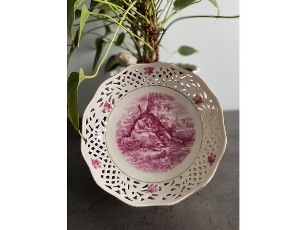 Antiek geperforeerd porseleinen bord van Schuman Arzberg. Met stempel: Bavaria. Periode: 1918-1929. Diameter: 21 cm. Voor verzending, kijk op onze Vinted-pagina: surprisewinkel