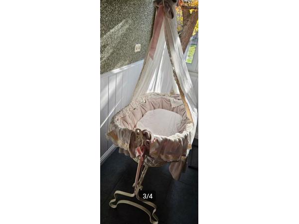 Mooie antieke wieg, met een zeer goed matrasje. Geschikt om je kindje overdag in te laten slapen. Niet de nachten ivm dichte voering aan de zijkant. Kan ook helemaal gestript worden.