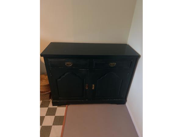 Mooie antieken kast, geverfd in een donkergroene kleur. Gebruikerssporen maar mooi op te knappen.