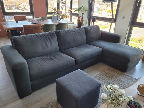 Afmetingen bank zijn 290 breed × 95 diep x 80 cm hoog. Hocker is 48x48x41.