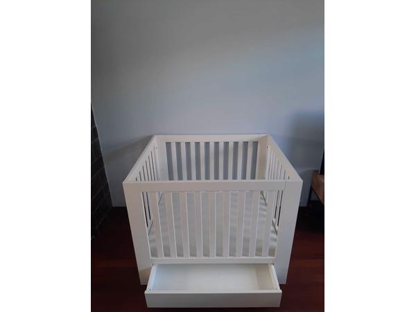 Mooie babybox van het merk Kidsmill Alaska. Lengte: 105 cm, Breedte: 85 cm, Hoogte: 86 cm In te stellen op 3 verschillende hoogtes. Er mist wel 1 van de 4 "pinnen" waarop de plank rust. Wij hebben daar geen problemen mee gehad, ook niet wanneer we 2 kinderen tegelijk in de box zetten. En wellicht is die pin als los onderdeel nog te koop?