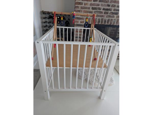 Gebruikte baby box, kleur wit, 95Lx60Bx80H cm. Enkel wat gebruikssporen bij de randen maar kan makkelijk nog een ronde mee.