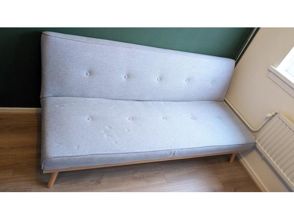 Nette grijze bank, ook te gebruiken als slaapbank. De eerlijkheid gebiedt te zeggen dat hij niet lekker ligt, maar zitten doet hij prima!