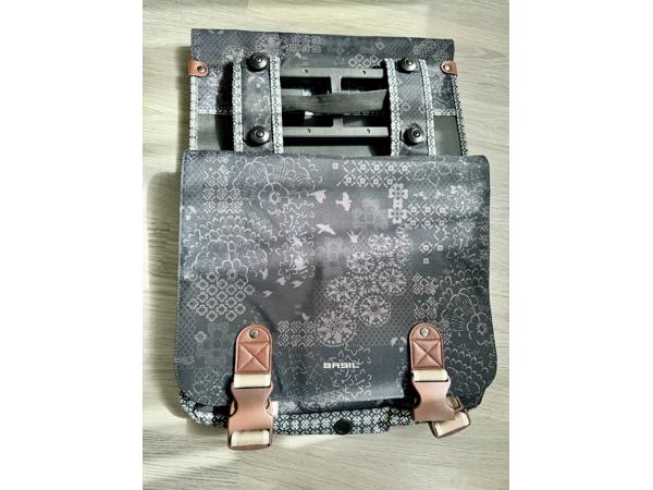 Dubbele en mooie fietstas met MIK plaat en nog sleutel. Deze tas bedoelt voor MIK fietsdragers of voor normale fietsdrager met adapterplaat ( niet inbegrepen, kost 15/20€) Tas is niet gebruikt op de fiets maar heeft kleine sporen op de schroeven.