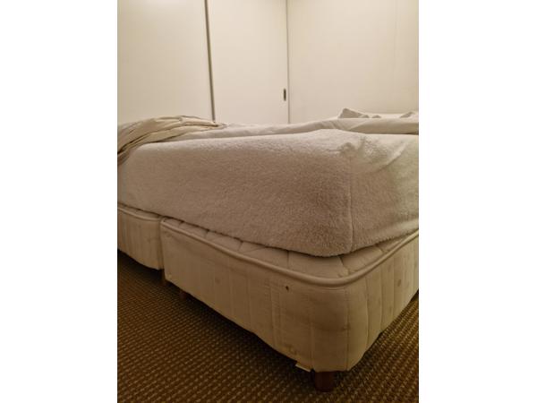 Bed boxspring 140x200. Bestaat uit 2 losse delen van 70x200 cm. Eventueel inclusief matras van 20 cm dik. Zonder dekbed en beddengoed.