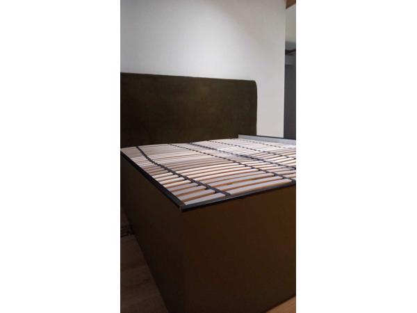 Grijze bedbank met opberglade, gedemonteerd
