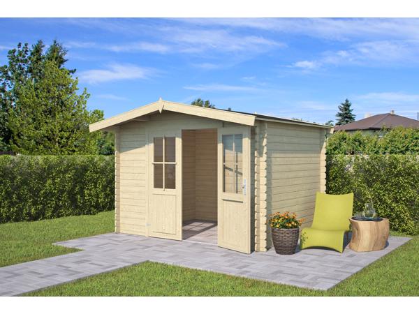De Blokhut Baltimore 292x230 Onbehandeld vuren van Outdoor Life Products is een praktische en royale blokhut met een traditionele uitstraling. Achter de afsluitbare dubbele deur met lage dorpel is bergruimte voor waardevolle spullen en/of tuingereedschap.