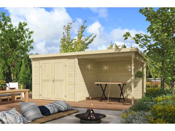 Het Tuinhuis Lars 500x250 heeft een fundamentmaat van 500cm(b) x 250cm(d). De massieve 28mm dikke vurenhouten wanddelen zijn uitgevoerd met mes en groef. De stapelbouw methode in combinatie met hoekpalen en schroefsysteem zorgt voor een zeer sterke constructie. Dit moderne en strak vorm gegeven tuinhuis met haar dubbele dichte deur is bijzonder geschikt als berging voor uw tuinspullen met daarbij een overkapping om ook heerlijk beschut te kunnen chillen. Het basispakket wordt geleverd inclusief een duidelijk montagehandleiding, onderdelenlijst en uiteraard alle benodigde bevestigingsmaterialen, zoals het deurbeslag. Dit Tuinhuis wordt zonder dakbedekking geleverd, hiervoor is optioneel een EPDM dakbedekking pakket bestelbaar. Het stapelbare blokhut systeem is door de handige doe-het-zelver prima zelf te monteren en dit tuinhuis wordt als bouwpakket bij u thuis geleverd.
