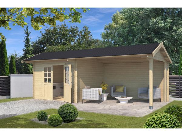 Blokhut met overkapping Olivia 385x295 + Aanbouw onbehandeld
