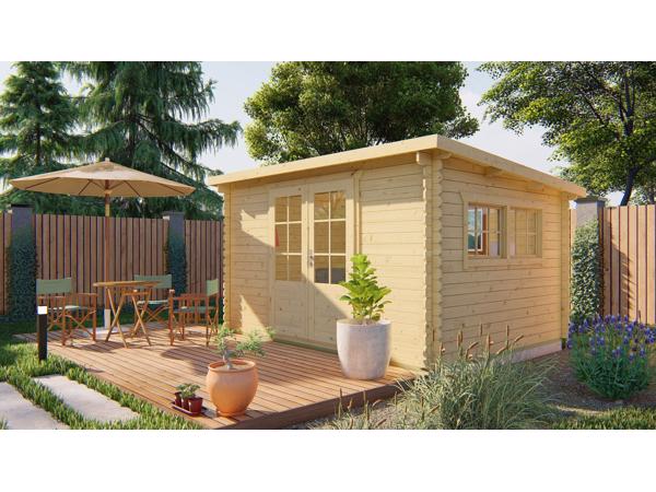 Blokhut Loya van Tuindeco wordt standaard blank uitgevoerd in 28 mm wanddelen met een dubbele deur en enkel glas. Met een mooie oppervlakte van 380x300 cm biedt deze blokhut veel bergruimte voor een lage prijs. Er wordt zelfs een bouwtekening meegeleverd, zodat u de blokhut ook zelf kunt opbouwen.