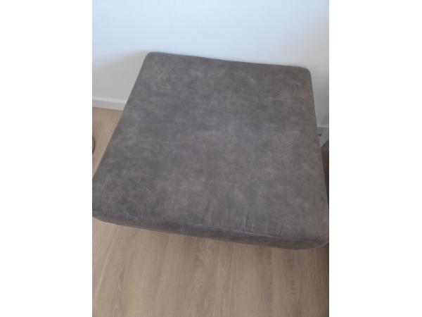 Een bruine poef te gebruiken als koffietafel of om op te zitten. Ziet er nog nieuw uit. Overbodig geworde na het samenwonen.
