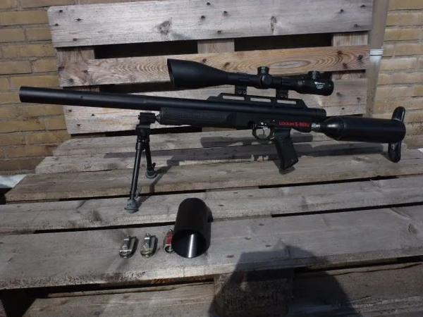 Te koop: In nieuwstaat verkerende Logun S-16XS cal. 22, voorzien van een Nikko Stirling Platinum 6-24x56AGIR Mil Dot kijker met Max mounts, Versa-Pod bipot en originele draagtas, vulnippel, sunshade en 1 magazijn.