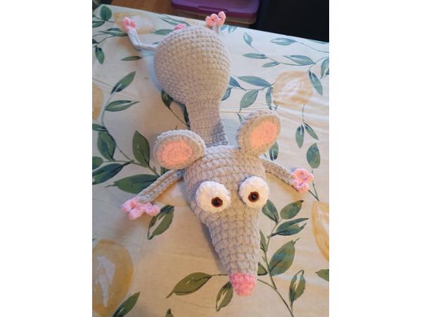 De deurstopper kan bovenop of onderaan de deur geplaatst worden zodat de deur bij tocht niet met een harde klap dichtvalt. Wel zo veilig voor mens en dier. Behalve voor de rat dan. Gehaakt in stevig maar zacht chenille velvet garen.
