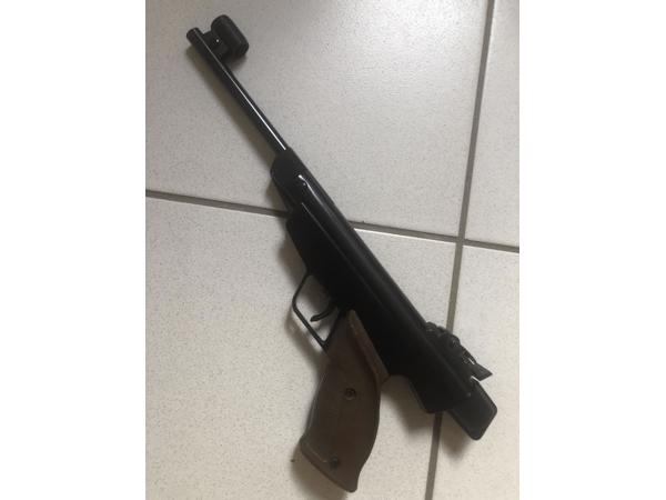 TK: Diana LP5G. Moet gereviseerd. Pellet komt er wel uit maar onder de 10m kaart of ver onderin. 4.5mm. Uiterlijk nog erg mooi. Blauwsel nog zeer mooi. Paar lichte gebruikssporen.