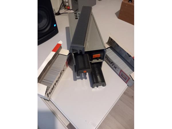 2 dozen met nieuwe diaraampjes (zonder glas). De raampjes bestaan uit 1 stuk (dus 2 twee helften op elkaar). De dozen zijn bijna vol, alles bij elkaar meer dan 150 diaraampjes.
