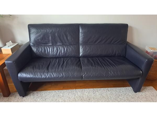 Donkerblauwe leren bank, onbeschadigd.