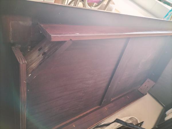 Donker gelakte massief houten tafel. Poten zijn eenvoudig te monteren.