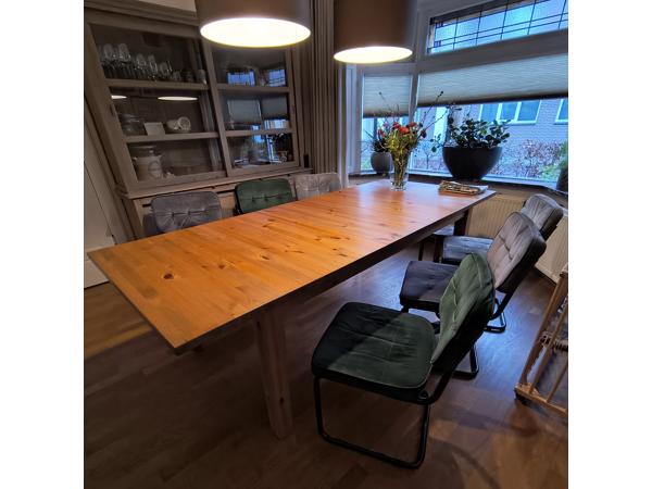 Voor een tweede rondje: Ikea uitrektafel 205/297x105x75cm en 6 stoelen. Tafel in 3 lengtes uit te breiden, 205 / 248 / 297 cm.