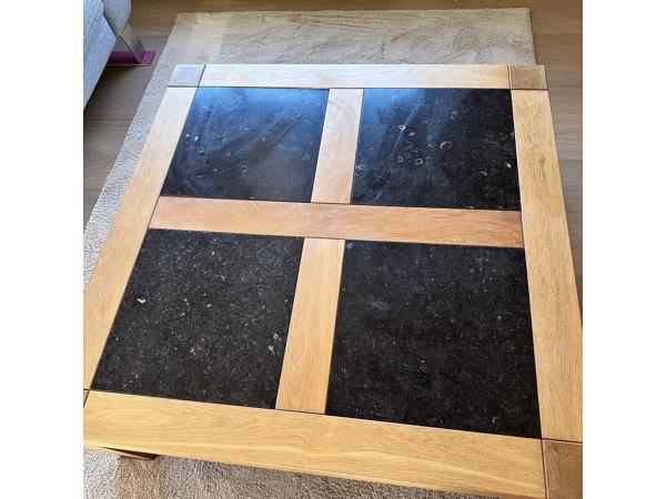 Massief licht eiken Salontafel met ingelegde zwart leisteen blad