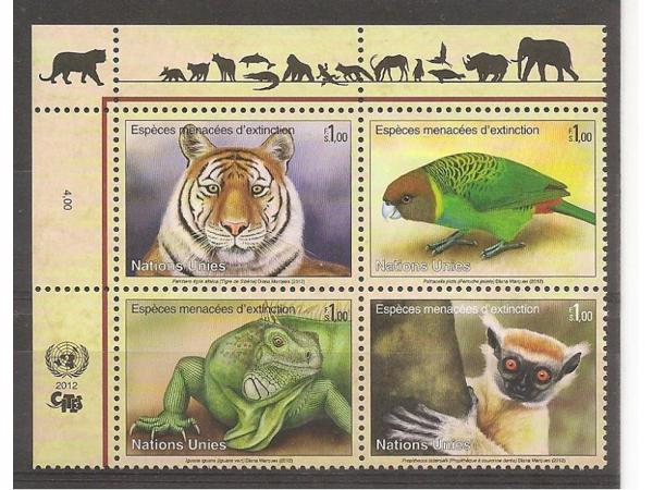 MNH blok van 4 postzegels Endangered Species 2012 van de Nations Unies