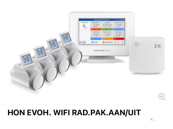 Honeywell draadloze thermostaat met 4 radiatoren knop wifi besturing en via appset is nieuw in doos nooit gebruikt of aan geweest