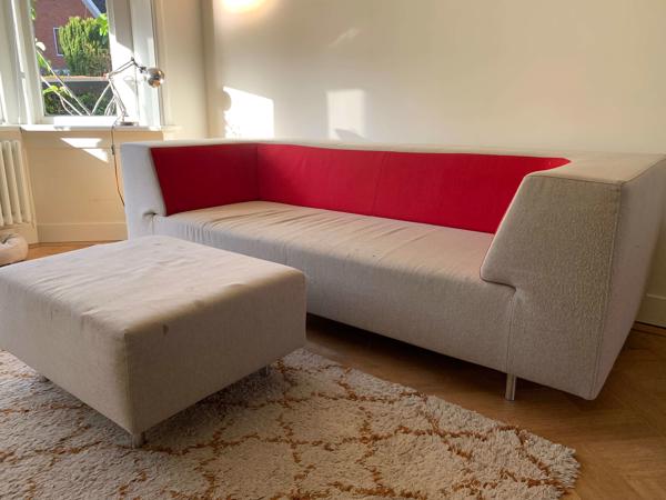 Op te halen in Overveen, nog een mooie bank met poef. Gaat weg ivm verbouwing. Heeft wat vlekken maar is wel schoon. Heeft in een rookvrij huis gestaan. Zit heerlijk!