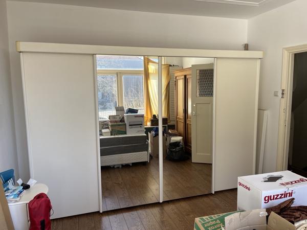 Garderobekast met schuifdeuren, 2 met spiegel. Binnen een hanggedeelte en planken, onderin 2 lades. 218 cm hoog 60 cm diep 334 cm breed Vandaag zaterdag 4 april gratis op te halen in Delft, Mijnbouwplein. Zelf uit elkaar halen en naar beneden brengen!