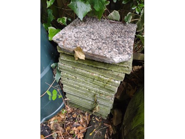 Terrastegels over, omdat terras kleiner is gemaakt. 1 tegel is in de hoeken beschadigd (zie foto). Als je geen vervoer hebt en in de buurt woont (Delft e.o.) dan kunnen we de tegels ook langs komen brengen.