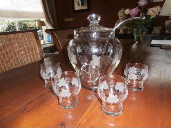 Te koop glazen Bowl  set met 4 glzen en lepel.