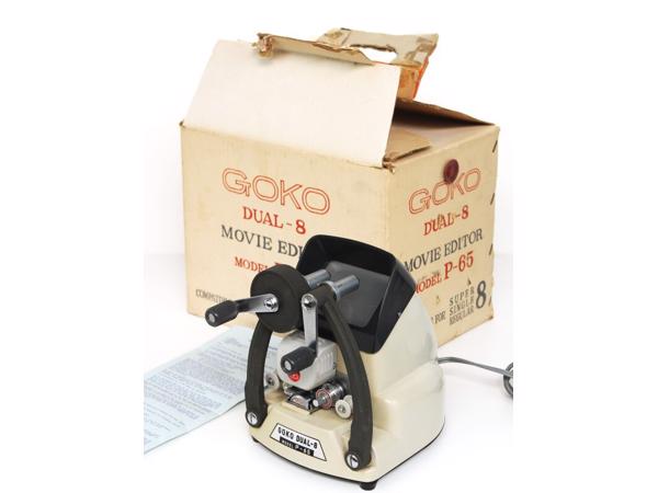 GOKO Dual 8mm Movie Editor Model P-65 compatibel voor super-8mm, single-8mm en standaard-8mm. Fabrikant Sansei Koki Co LTD Japan. Van het jaar 1966-1967.