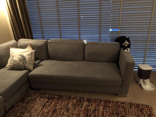 Heerlijk zittende design hoekbank van Verzelloni met afneembare hoezen voor 7 personen (300x275). De rits van 1 hoes moet vervangen worden. De stof is blauw/bruin gemêleerd. Gratis op te halen vanaf vandaag 23 feb 2021.