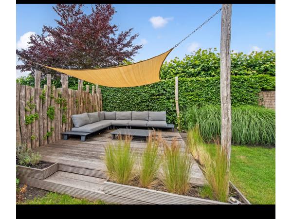 ⚠️ Let op: • Loungeset en zonnedoek horen er niet bij. • De palen links op de foto blijven staan.